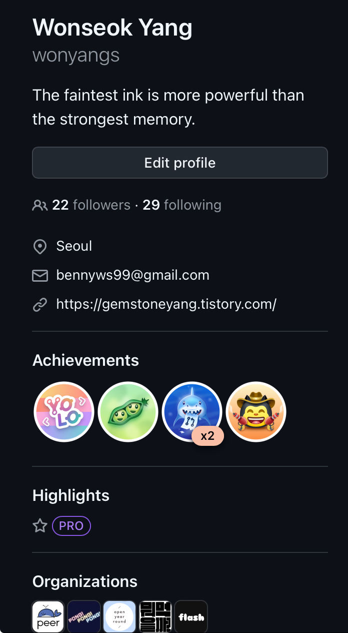 Approved가 보라색으로 바뀌고 깃허브 프로필에 PRO 배지가 생기면 성공이다.